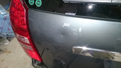 左のクォーターパネルが結構な衝撃をうけていましたが交換せずに板金で修理しました。